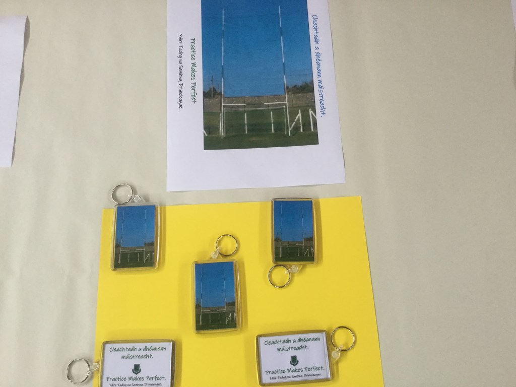 On March 21st, the pupils organised their Showcase Day, where the community was invited into the school to look at and purchase a Seanfhocal Keyring. It was a sell-out success with some disappointed customers as we couldn’t meet all demand!