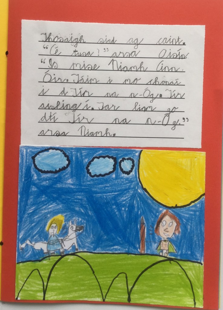 Rang a 3 worked very diligently this year on creating books based on Oisín agus Tír na n-Óg. They produced some lovely artwork and writing. Maith sibh a pháistí!