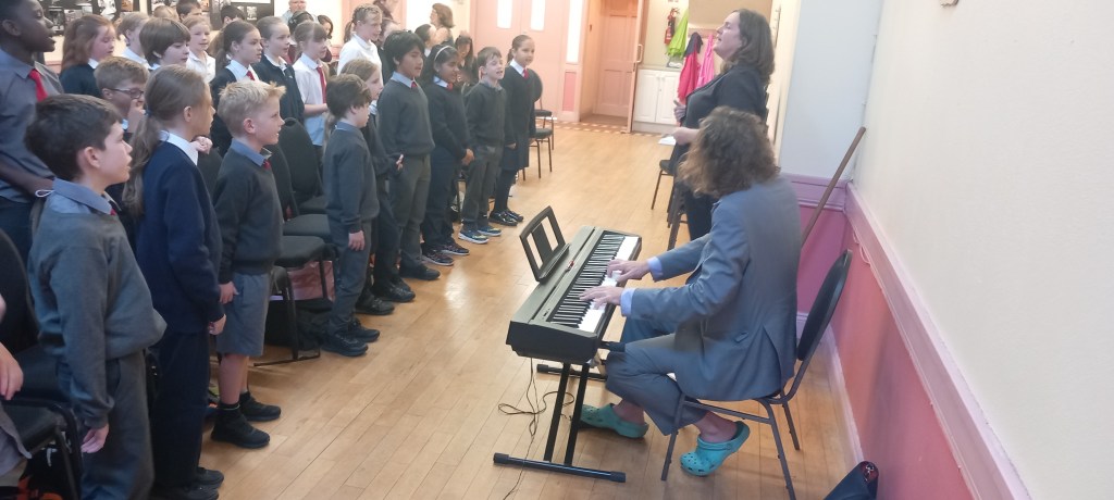 We were delighted to take part in a singing workshop held over three days during the recent Drimoleague Singing Festival. The workshop was coordinated by the festival organisers and led by choir director Susan Mc Manamon. During the three days the children learned a variety of differences songs and on the Sunday performed before ‘Hot House Flowers’ at the closing concert. The children were delighted to get the chance to perform with Liam O’ Maonlaí who joined the children for a lovely version of ‘I can see Clearly Now’. We would like to say a big thank you the Drimoleague Singing Festival organisers, Susan Mc Manamon and Liam O’ Maonlaí for making it a lovely experience for the children.