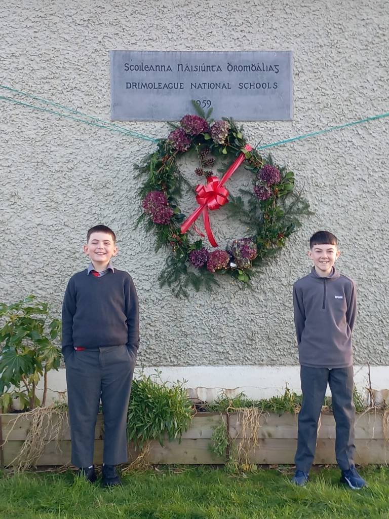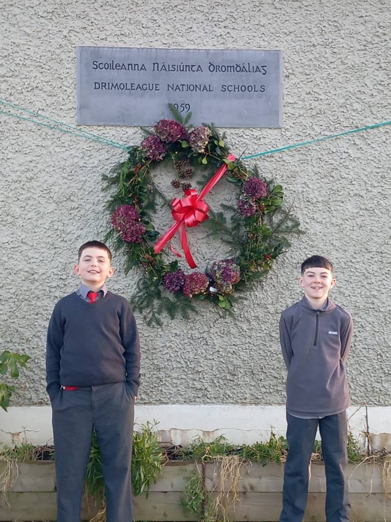 We are extremely busy in Drimoleague N.S getting ready for Christmas. A special to our SNA’s for decorating the school for Christmas and to Noreen for making a large wreath for outside the school. Noreen was helped to put up the wreath by two of our pupils.