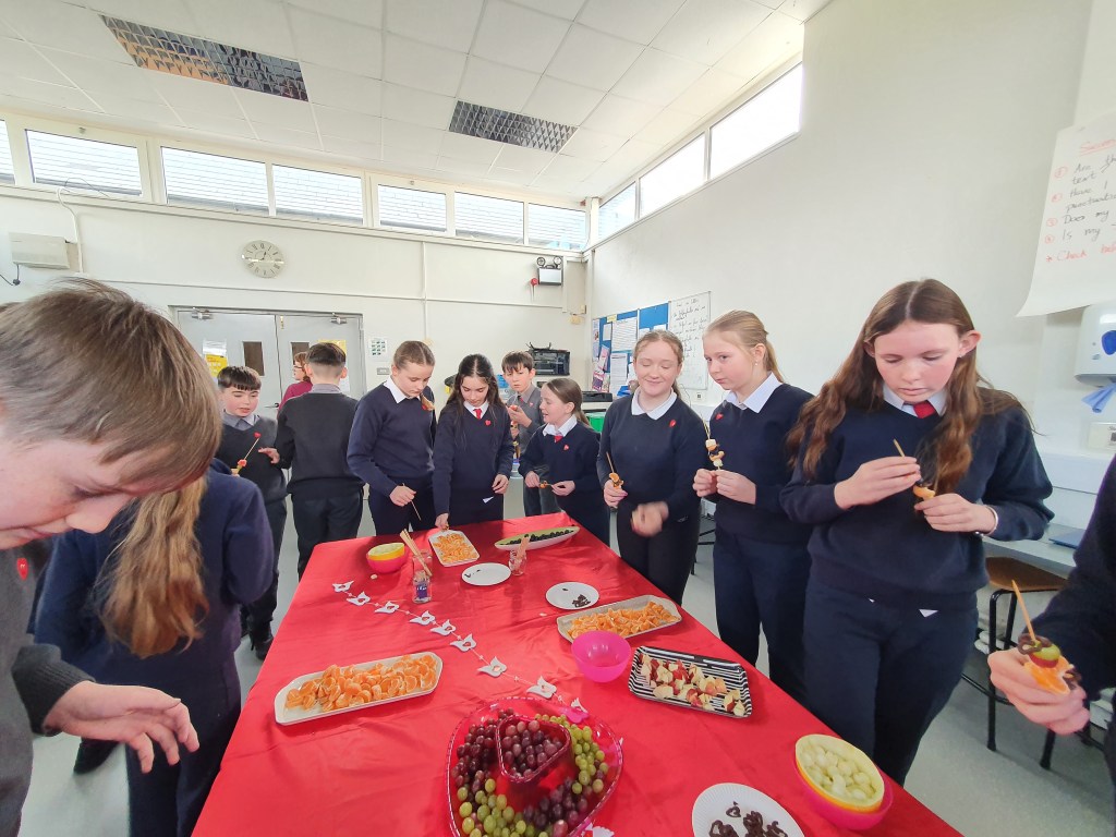 As part of our Wellbeing week activities and to mark Valentines Day the children got a chance to make fresh fruit skewers. We learned that healthy eating is really important for our overall wellbeing. All pupils enjoyed a choice of different fruits including melon, apple, grapes blueberries and more.