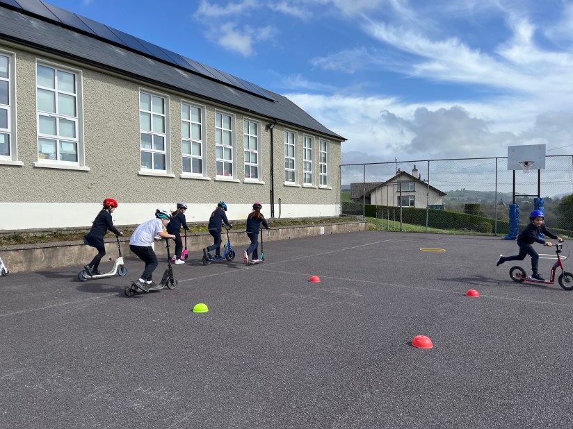 Today we welcomed Catherine from Green Schools who did a scooting workshop with our 3rd and 4th class pupils. The workshop looked at how to scoot safely and the importance of wearing a helmet when using a scooter. The workshop was a part of the Green Schools Transport Flag. Thanks to Catherine for giving a great workshop and to our Green Schools Committee for organising.