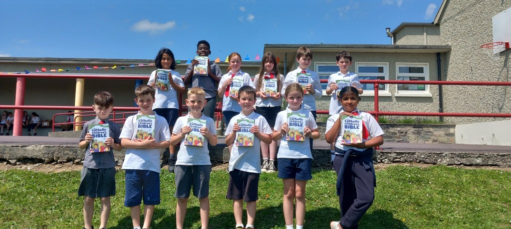 We were recently delighted to accept a donation of twelve brand new child-friendly Bibles for the school. A huge míle buíochas to Drimoleague/ Drinagh parish and our parish priest, Fr. Eoin, for organising the donation.