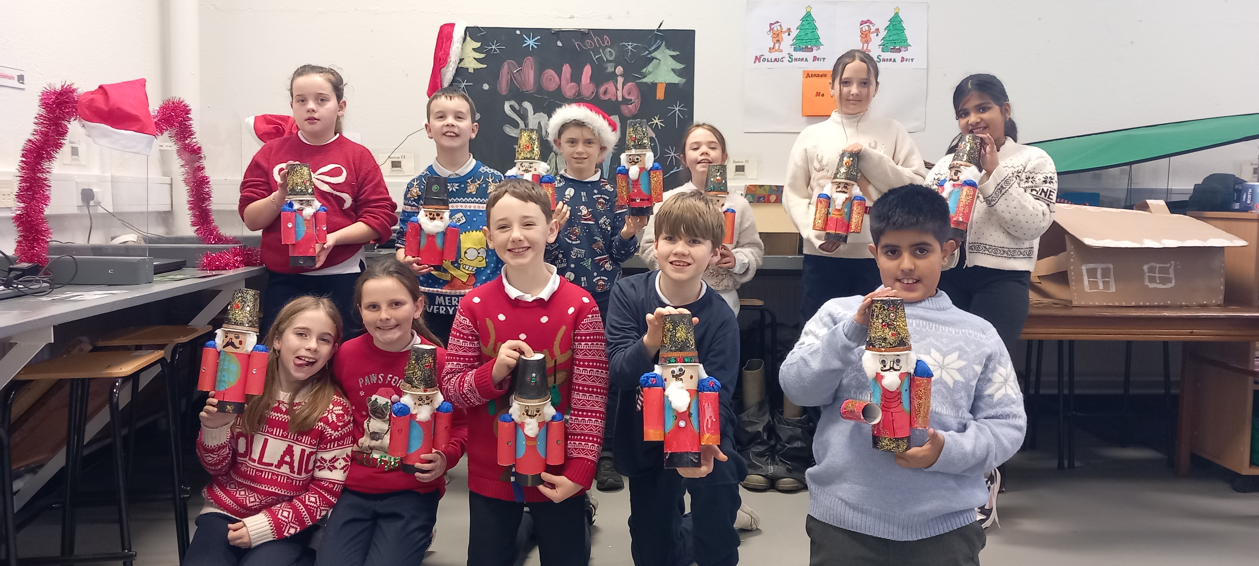 Our 3rd and 4th class pupils made some lovely festive Christmas art recently, including a Nutcracker construction from recycled materials and a snowman painting.