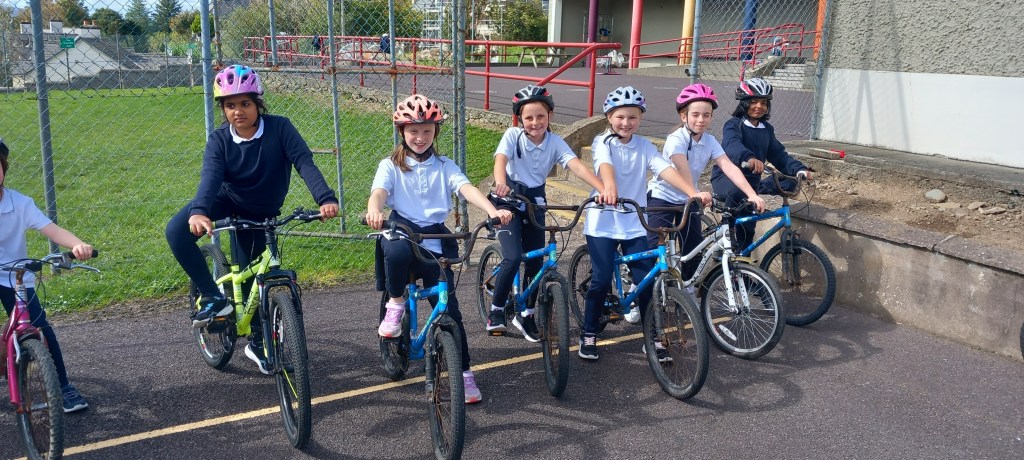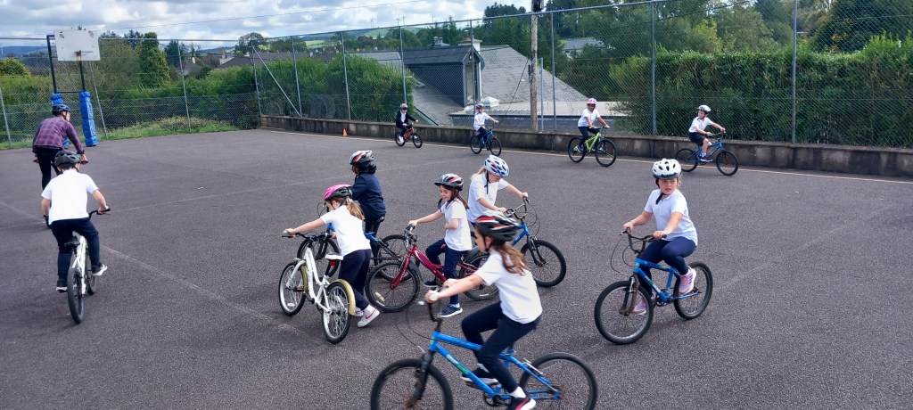 3rd and 4th class pupils recently took part in a cycling skills programme as part of the Sprocket Rocket. As well as having lots of fun, they improved their cycling skills and learned lots about cycling safety.