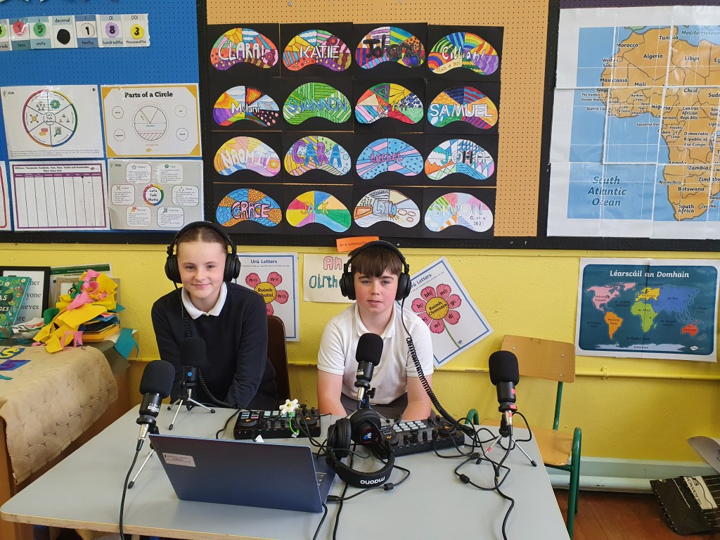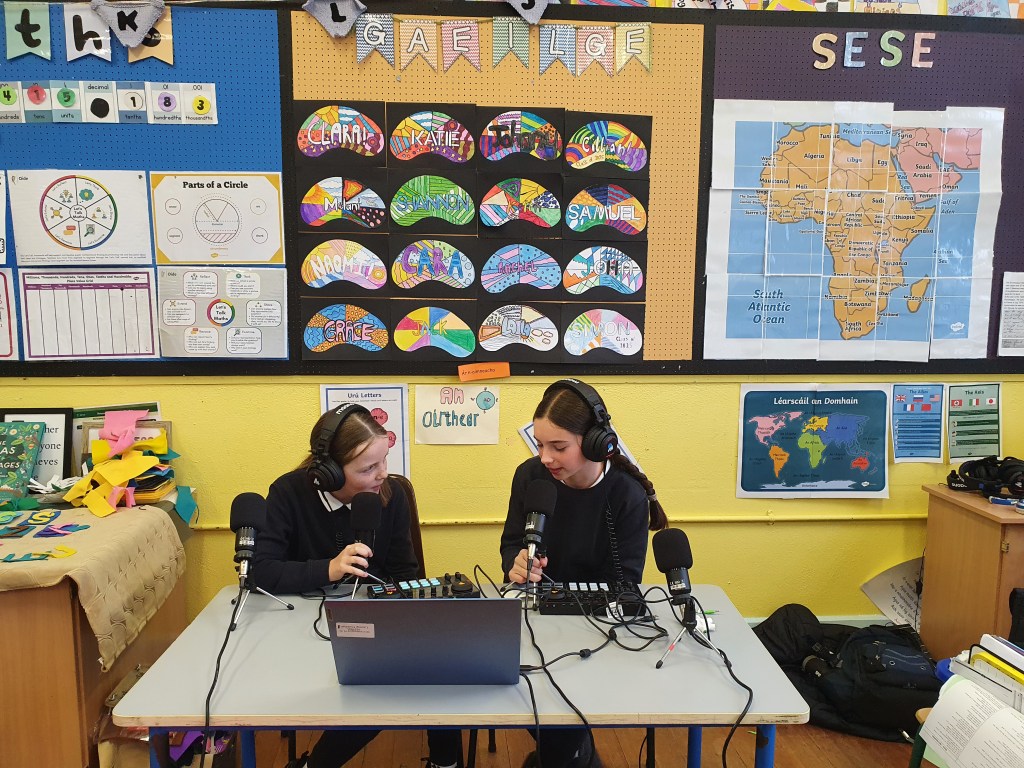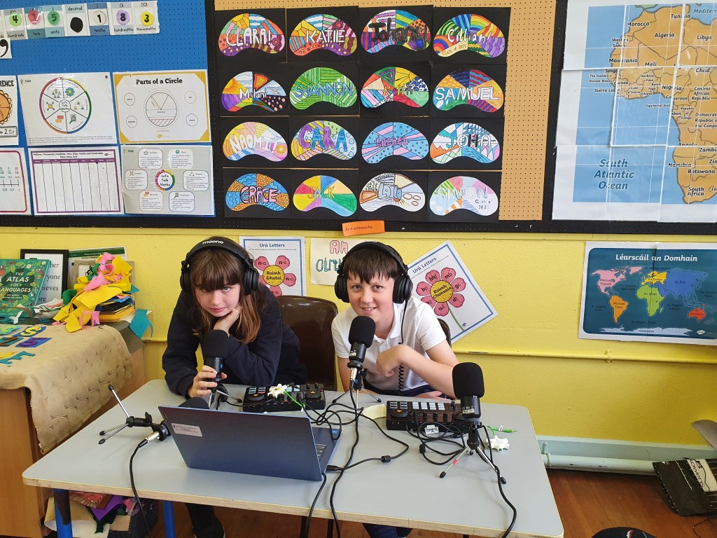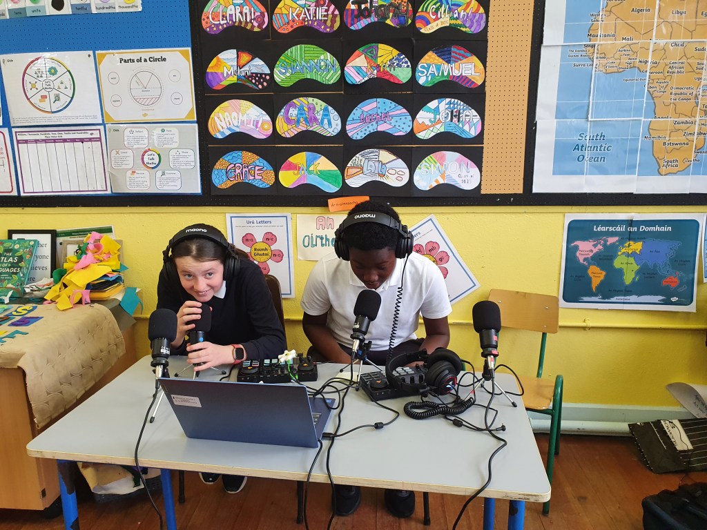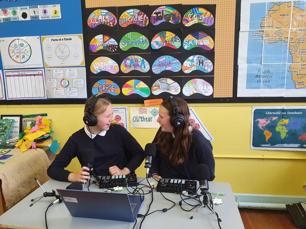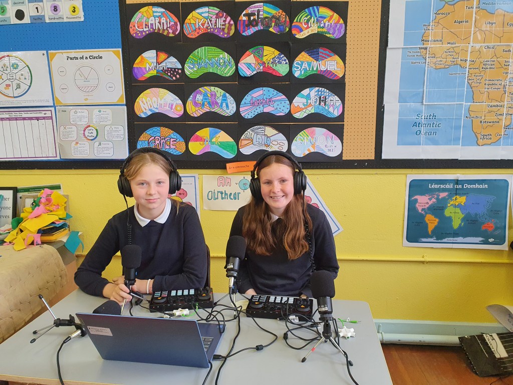 Sixth Class created a podcast, Chess Piece Oracles, for the Ficheall competition. They brought the game to life by interviewing chess pieces about their roles and strategies. From the Queen’s power to the Pawn’s perspective, each piece had a story to tell.